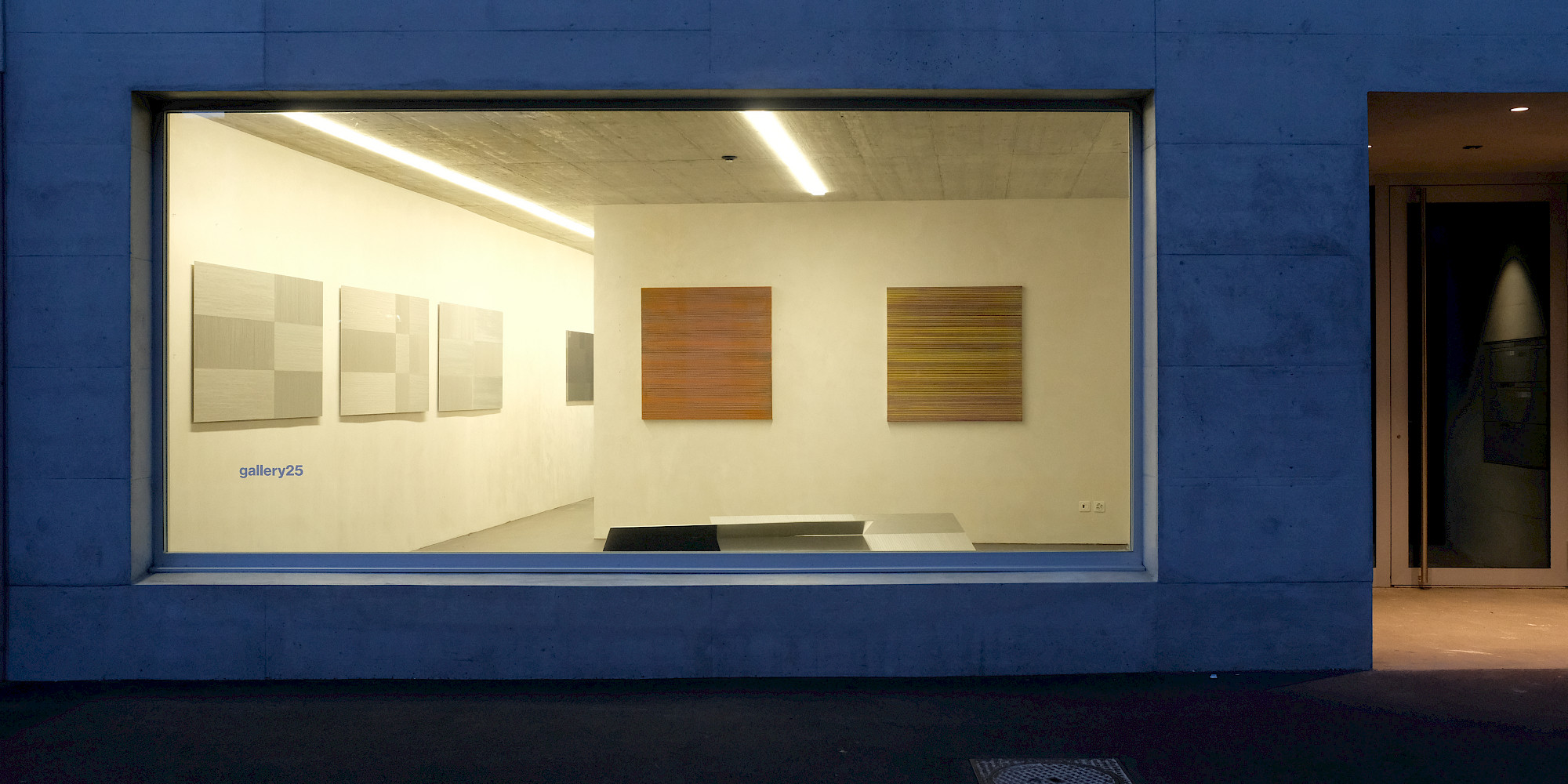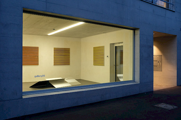 „Präzise Zufälligkeiten“ nennt Peter Steinmann die gewollten Unregelmäßigkeiten seiner Bilder. Während eines Aufenthaltes in New York im letzten Jahr und in Basel entstanden zwei Werkgruppen, die nun in der Gallery 25 zu sehen sind. Wenn New York eine Inspiration für den früheren Architekten war, dann durch die reissbrettartige Anlage der Stadt. Auch den beiden Werkgruppen, die nun unter dem Titel „Peter Steinmann, New York – Basel“ erstmals gezeigt werden, liegen Raster zugrunde. Bei Peter Steinmann ergeben sie sich meist aus dem Arbeitsprozess, dem jedoch grundsätzliche Überlegungen über das Bild vorangehen. Während die Werke, deren Bildträger Aluminium ist, auf dem Wechsel von unterschiedlich gerichteten Strukturen beruhen, sind die Leinwände durch horizontale Linien bestimmt.